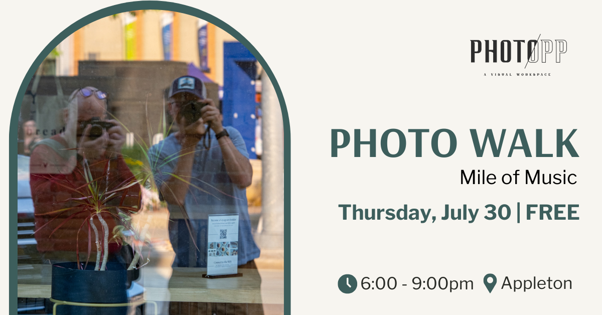 Photo Walk: Mile of Music Thursday, July 30, 2026 6:00 PM 9:00 PM Google Calendar ICS COMMUNITY PHOTO WALKJoin fellow photographer as we walk around the first night of Mile of Music and take photos! Our meet up location and optional social hour location will be announced soon! This event is FREE.📅 RSVP appreciated! RSVP: