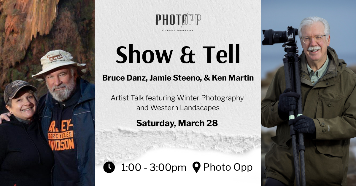 Join photographers, Bruce Danz, Jamie Steeno, and Ken Martin as they present some of their favorite photos and the stories behind them. Bruce will share his stunning Winter Photography and Jamie and Ken will feature majestic Western Landscapes.